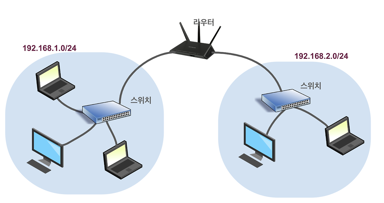 따라서 데이터가 내부 네트워크에서 스위치를 통해 이동한 후, 외부 네트워크로 전송될 때는 공유기를 통해 이동한다.