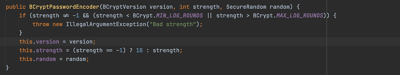 strength가 cost factor(라운드 힛수)인데 따로 정의하지 않으면 기본으로 10으로 설정한다.