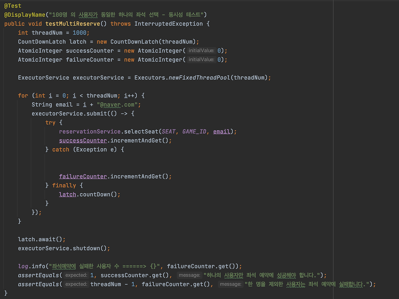 - 다른 유저가 이미 선점한(락이 걸린) 좌석이라면 모든 락이 실패한다.