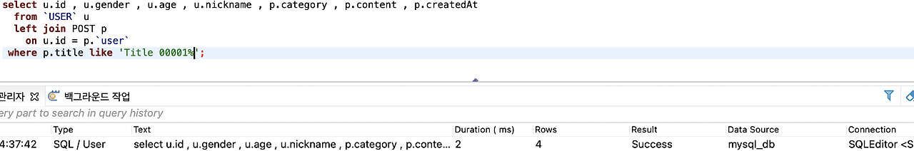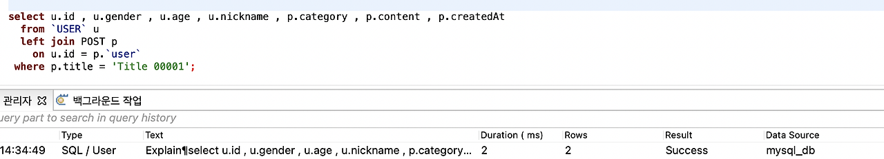 인덱스를 사용하여 검색하는 것을 확인할 수 있다.