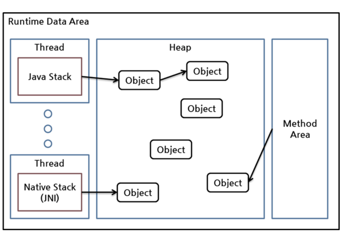 • 네이티브 스택, 즉 JNI(Java Native Interface)에 의해 생성된 객체에 대한 참조