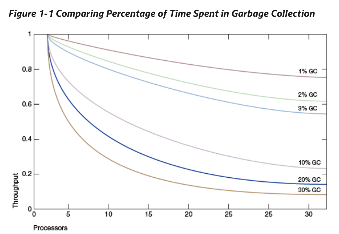 • 단일 프로세서에서 가비지 컬렉션 시간이 1%인 경우.