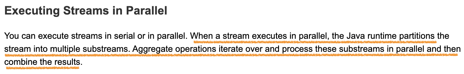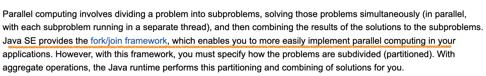 Java SE는 병렬 처리를 위해 Fork/Join 프레임워크를 제공합니다. Parellel이 내부적으로 Fork/Join 프레임워크를 사용함을 알 수 있습니다.