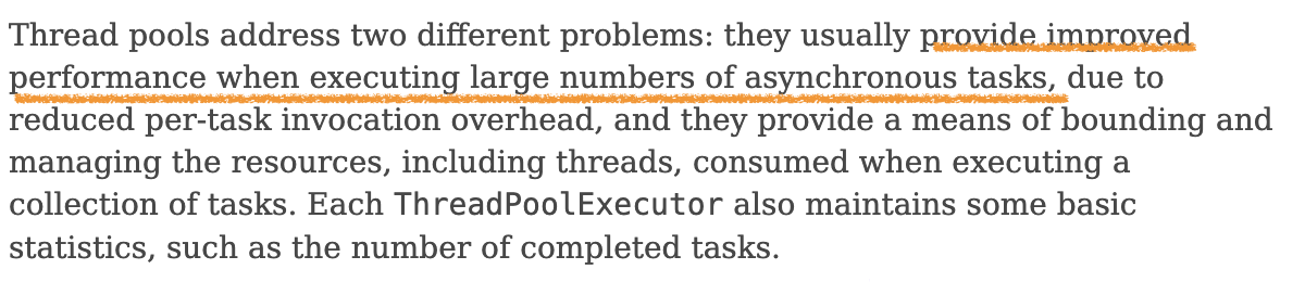"스레드가 잠시 대기하더라도 다른 스레드가 대기열의 작업을 처리할 수 있다."는 전제로 설계되었기 때문에, I/O 작업에 적합합니다.(Blocking 허용)